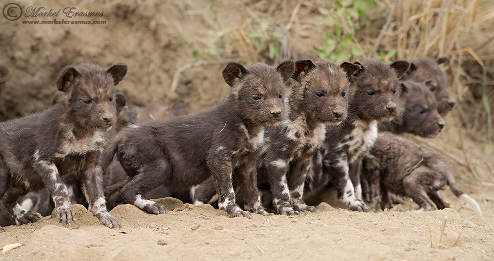 One of the definite highlights of my year was being able to witness how the Ngala pack of Painted Dogs (African Wild Dogs) brought their 17 new puppies out of the den for the very first time. My wife and I were spending time with the EWT researcher Grant Beverly who monitors all the movements and dynamics of this species in the greater Kruger area, and perchance we happened to be at the den at the right time to witness the special moment when the pack called the pups out and regurgitated food for them and allowed them to explore and play around for about 45 minutes before nudging them back into the old termite mound they'd chosen as a den site.